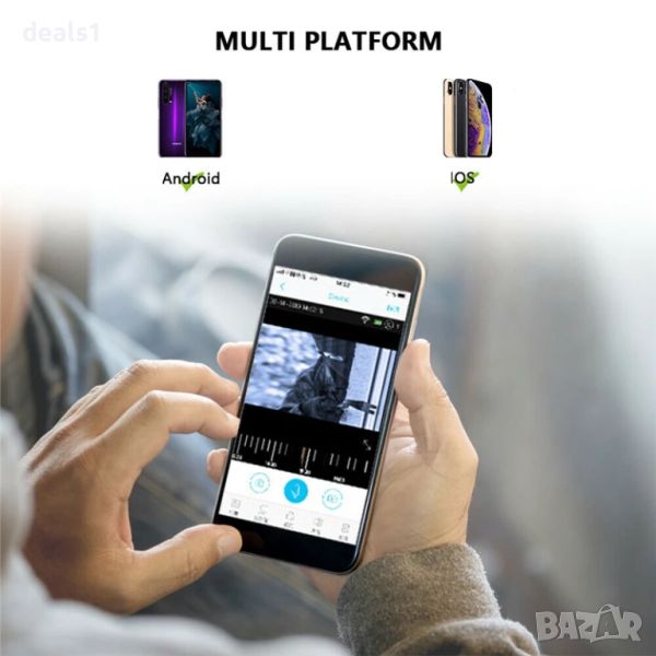 - Тази IP камера разполага с нощно виждане и PIR сензор за движение, който автоматично засича движение.