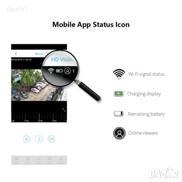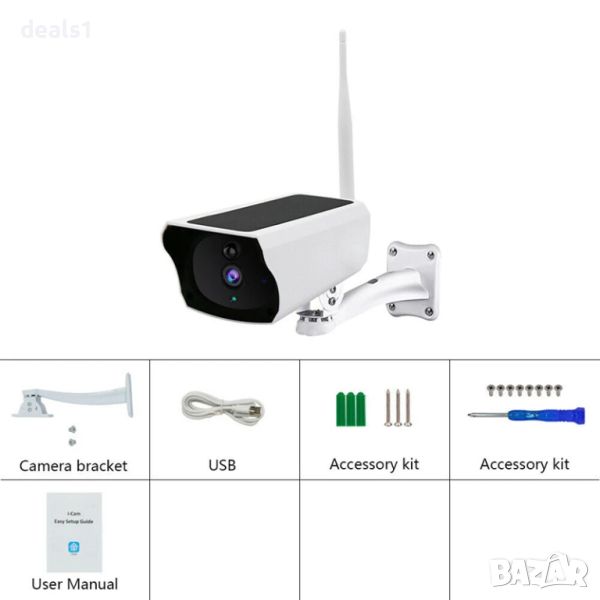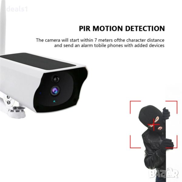 - Камерата е снабдена със соларен панел, което я прави енергийно независима и идеална за външно монтиране.