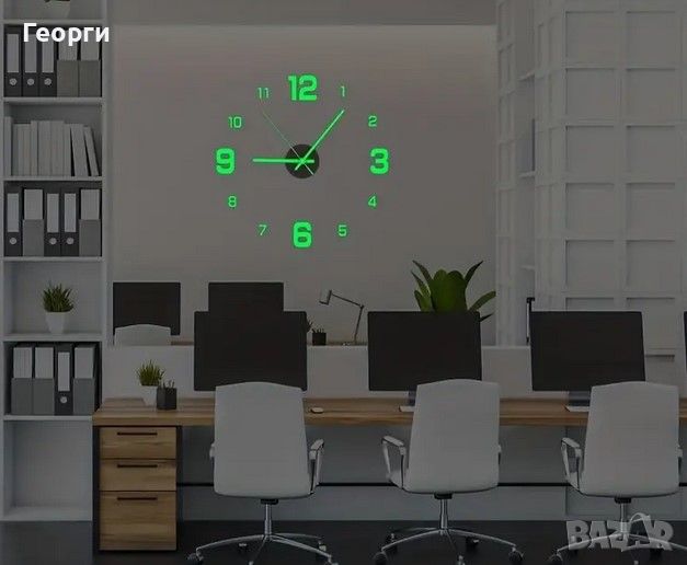 Светещ стенен часовник,изключително тих, със светещи стикери за стена и стрелки !