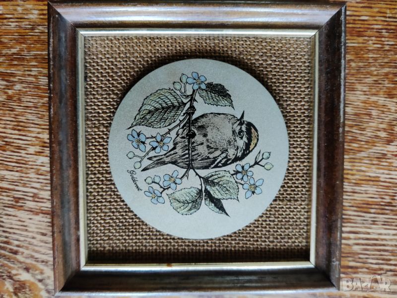 Цената е за една картина. Основата е текстил а плочката е метал.