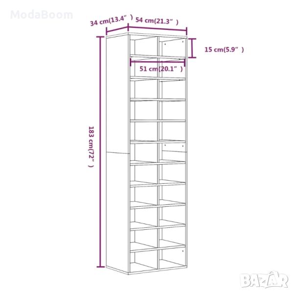 **Шкаф за обувки, опушен дъб, 54x34x183 см, инженерно дърво**