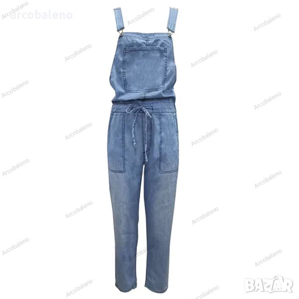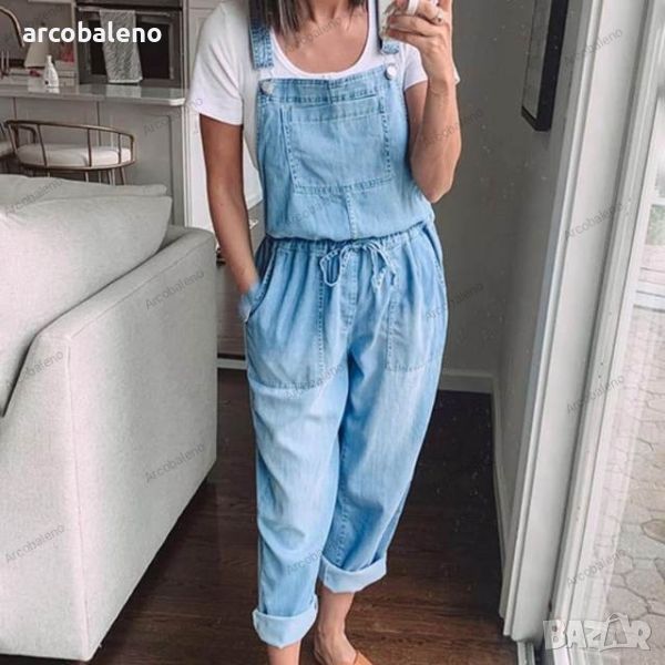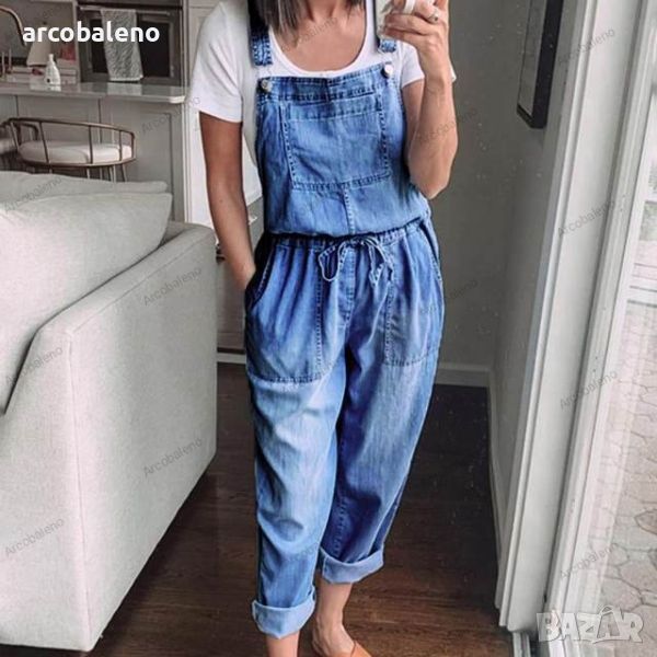 Свободен моден дамски дънков гащеризон с ластик със средна талия, 2цвята