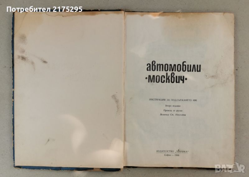 Автомобили Москвич- инструкция за поддържането им - изд.1966г. → Обява 46627093
