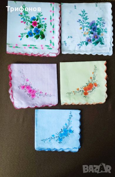 1. Чисто нови дамски и мъжки кърпички от плат - карирани, с цветя, с дантела