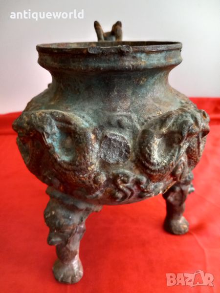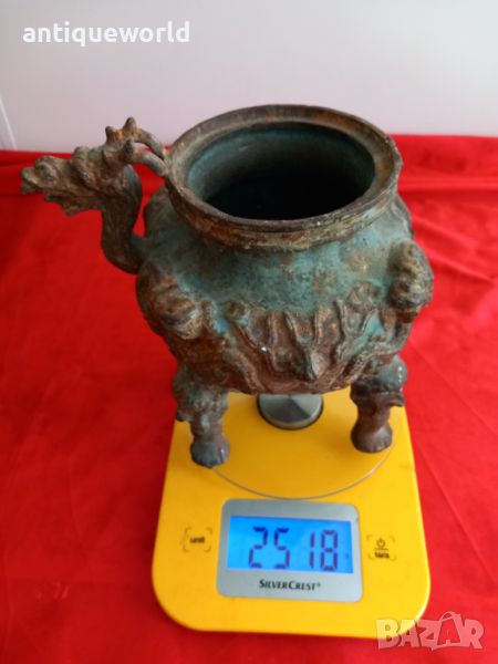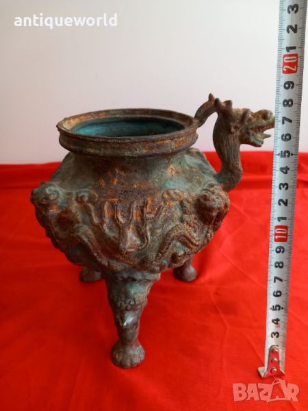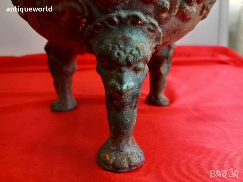 Уникален Много Красив Китайски Масивен Железен Съд с ДРАКОН 18-19Век , Период на Династия ЦИН .Налична Маркировка.С естествента си патина.
