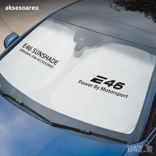 100% Чисто нови и висококачествени сенници с надпис E 46 Power By Motorsport от дясната страна и E46 SUNSHADE ORIGINAL E46 ACCSSEORIESот лявата страна
