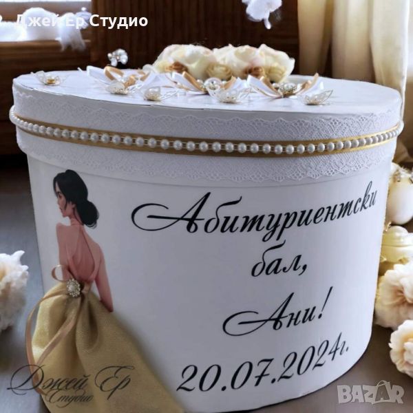 Кутия за картички и парични подаръци, подходяща за абитуриентски бал. Цветовете и материалите могат да бъдат по ваш избор. Срок на изработка 5 работни дни.
