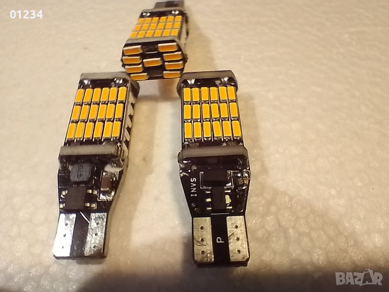 На всеки габарит има монтирани 45 светодиода с импулсен стабилизатор на ток. Габаритите са снимани от двете страни за да се виждат елементите на токовият стабилизатор. Нямат поляритет - както и да ги обърнете, все ще светят.