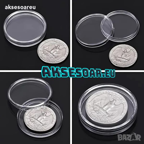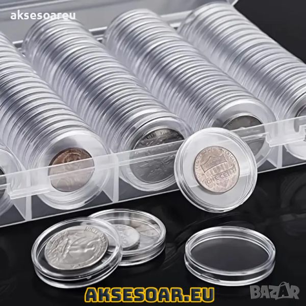 прозрачни кутийки за монети.