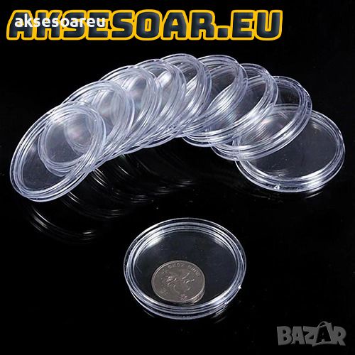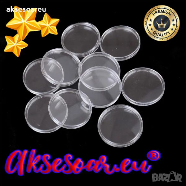 10 бр. прозрачни кръгли кутии за монети от 15 до 50 мм пластмасови