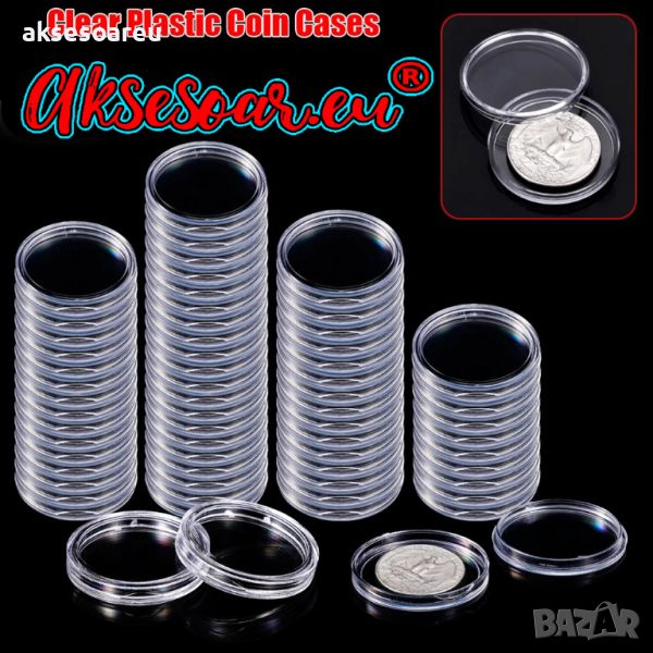 10 бр. прозрачни кръгли кутии за монети от 15 до 50 мм пластмасови капсули за съхранение Витрини Орг