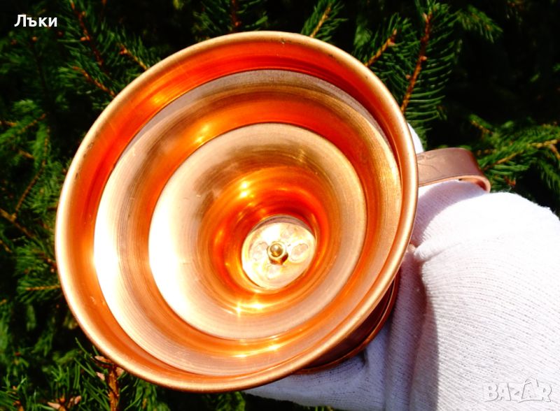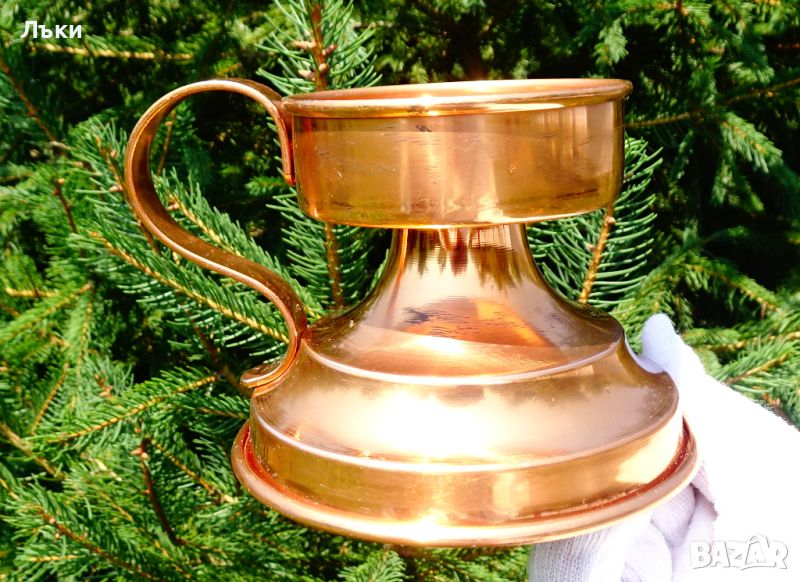 мед с красив релеф и ефектно извита стабилна дръжка.Свещника не е ползван.Височина 9 см.,диаметър на основата 11 см.,диаметър на чашката 7.5 см.,тегло 160 гр.