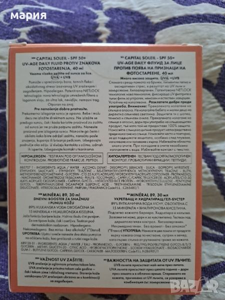 Чисто нов комплект capital soleil SPF 50 включващ слънцезащитен тониран флуид -40 мл и хидратиращ гел-бустер Mineral 89 -30мл.Нов,неотварян,в срок на годност.Изпращам с преглед.