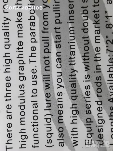 Прът за големи риби,2,4м с фуджи /fuji guides/водачи 9 на брой,с метален як макародържач,дръжка 80 см дълга с Ф 36мм,въдицата става за тролинг,кльонк,както и от брега с нанасяне за големи риби,сомове,морски риби,есетра и др,пръта е чисто нов,не е ловено с него