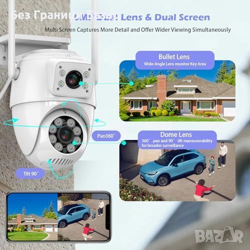 Двоен обектив и 360° изглед: Панорамен мониторинг и детайлно увеличение.