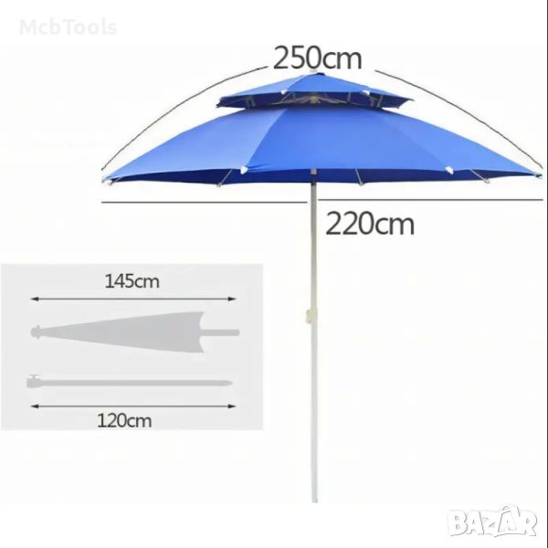 Плажен чадър с двоен покрив