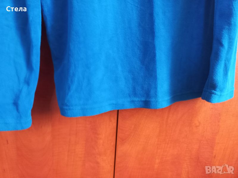 Ярко син, с цип на яката, 100% полиестер, мека и топла материя.