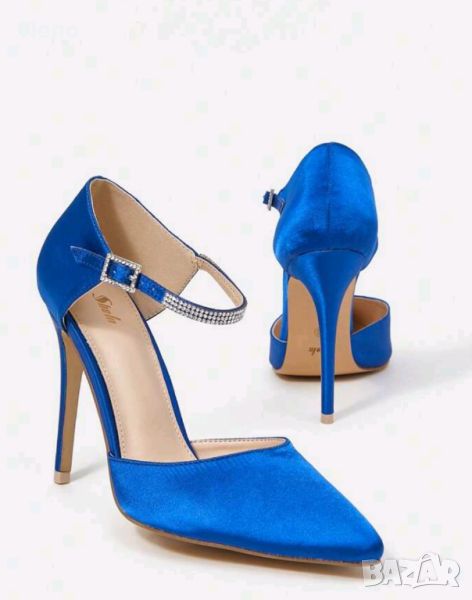 Нови са не са и обувани дори стелка 24см височина на тока 8см подходящи за повод .Турско син цвят са сатен.