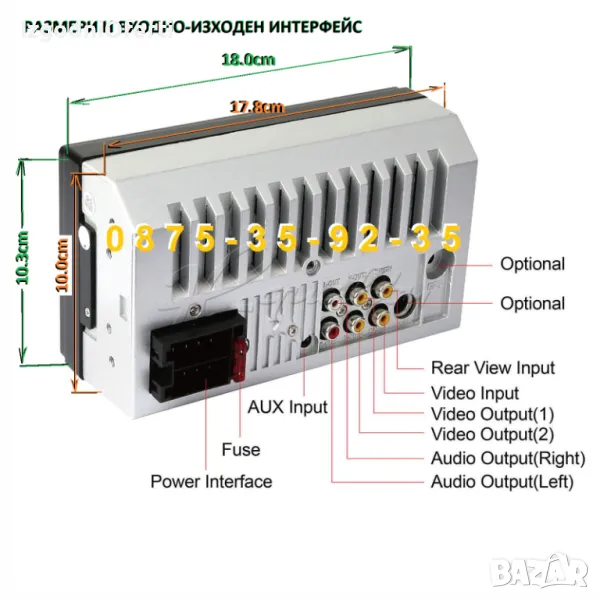- AV изход за камера за задно виждане (излиза на дисплея, като включиш на задна предавка)