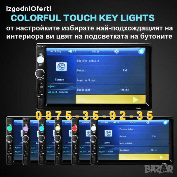 Медията има смяна на цвета на подсветката на бутоните и Mirror Link ( копиране на екрана на вашият мобилен телефон). ПОДДЪРЖА Mirror link фукция за iOS и ANDROID. Съвместим с Apple Carplay и Android Auto.