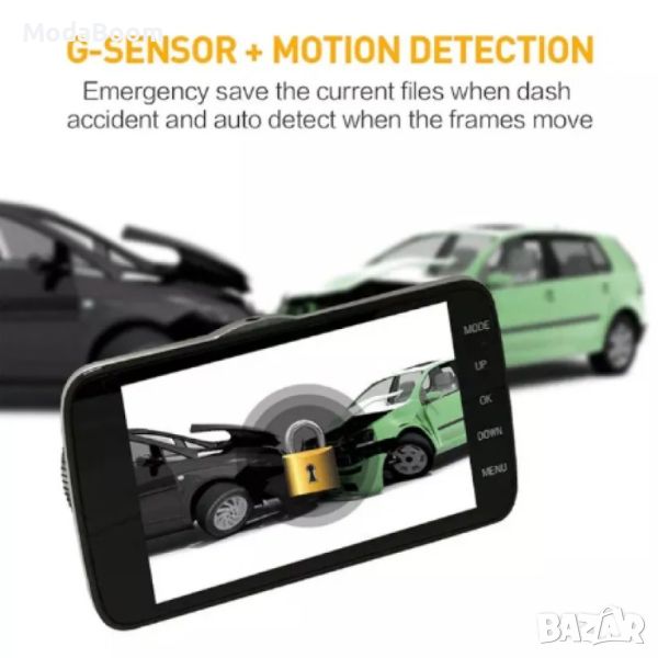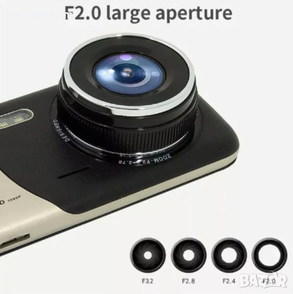 Модел: WDR Full HD 1080; Екран: 4.0 инчов IPS екран; Резолюция на екрана: 480 * 800 пиксела; Външен вход / изход: 1 x USB 2.0; Капацитет на TF картата: до 32 GB (карта с памет не е включена); Вграден високоговорител; Вграден микрофон; Капацитет на батерията: 300 mAh литиева батерия; Поддръжка на G-SENSOR; Сензор за откриване на движение; Цикличен запис; Предна камера: 720p / 1080p (30 кадъра в секунда); Задна камера: 720p (25 кадъра в секунда); Ъгъл на камерата: 170 градуса; Видео формат: MOV; Формат на изображението: JPEG; Компресиране на видео: MOV съхранение; Поддръжка на много езици.