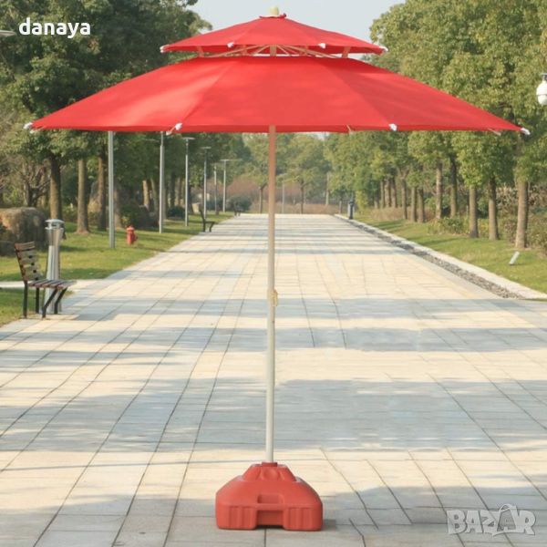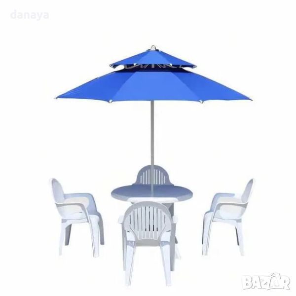 5011 Голям плажен градински чадър с два покрива против вятър, 220 см