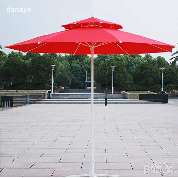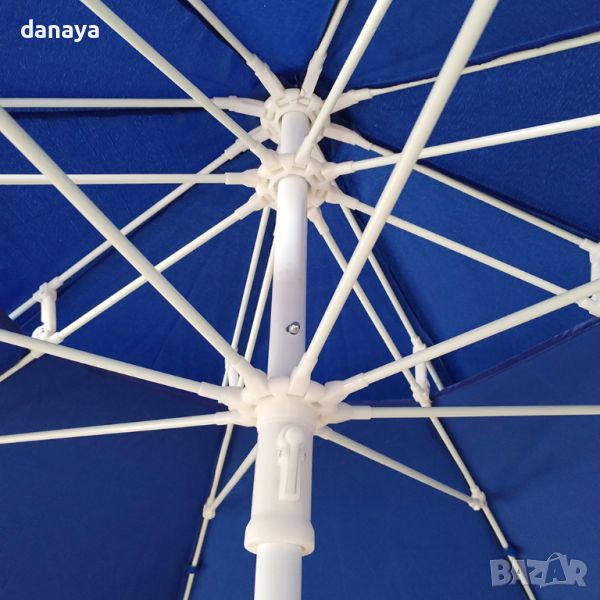 Голям и качествен градински чадър, който може да се използва и на плажа. Здрава и плътна промазана материя, защитава от UV лъчите. Идеален за двор, градина, къмпинг, плаж. Силният метален прът прави чадъра много стабилен и издръжлив. Двойният покрив осигурява стабилност на чадъра при вятър, също така позволява циркулация на въздуха в горещите дни. Разпъването става много лесно и бързо, с ръчен механизъм. Горната част на чадъра е с размер от 2.5 м. Плажният чадър е с бяло прахово покритие, здрави ребра, 170T полиестерна тъкан, калъф за носене. В горещите периоди или в дните с прекалено много слънце е добре дошло малко отдих на сянка. Изберете прибиращ се чадър за терасата, който ще ви осигури комфорт в горещите дни.