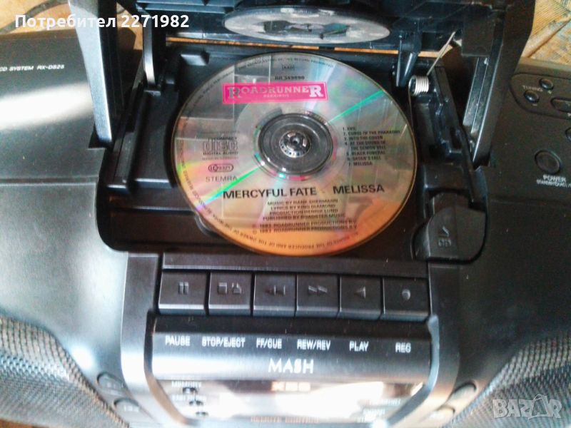 Радио,компакт,диск,касета,вход,слушалки- всичко работи,но касетата леко влачи.Много добър звук с три степени на баса.Оригинална антена,селективно цифрово радио,чист отсег на батериите.Липсва дистанционното.Външно е за почистване,има драскотинки по корпуса.