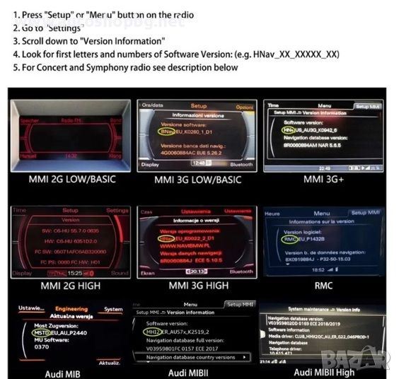 Преди поръчка трябва да снимате менюто, както е показано на снимка 2 и да уточните колко инчов е дисплея на оригиналното Ви радио!