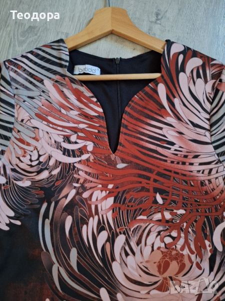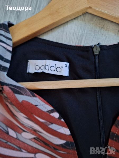 Прелестна рокля на Batida 5 размер. Гръдна обиколка 100 см/ талия 96 см/ханш 114 см/ дължина 102 см. Мерките са в неразтегнато състояние. Материята на роклята е стегната, еластична и има подплата. Цена 24 лв