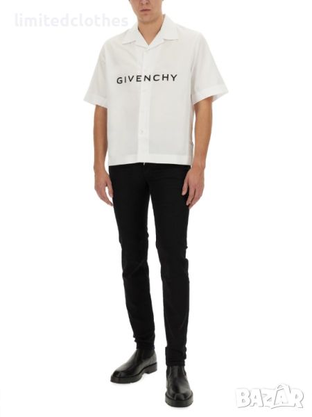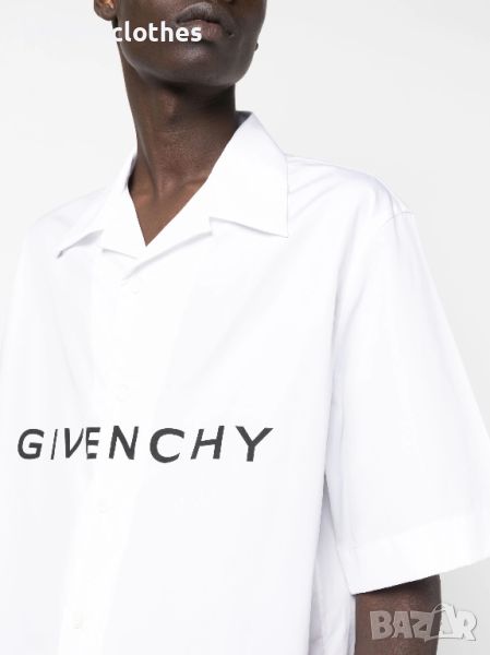 GIVENCHY WHITE SHORT FIT LOGO PRINT Мъжка Риза с Къс Ръкав