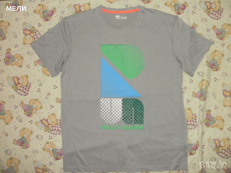 Тениската на HELLY HANSEN, оригинална, нова.По номер е L, цветовете са по наситени от на снимките. Материята е мека, тънка и дишаща от 100% полиестер. Сравнете мерките!!!