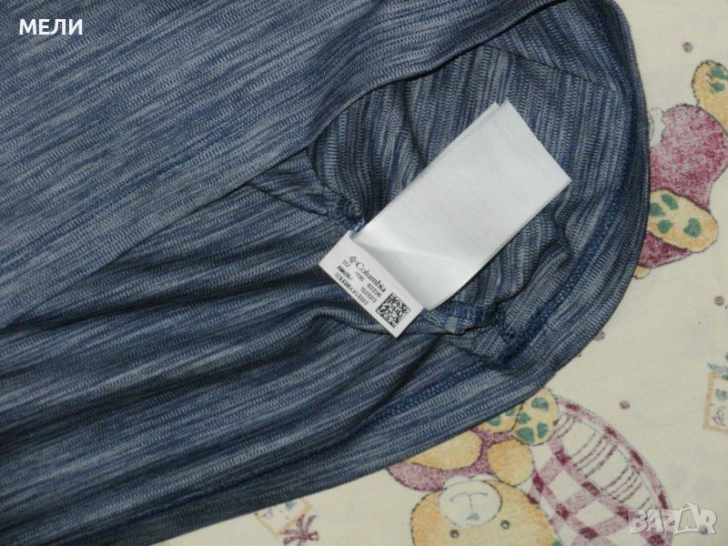 Тениската на COLUMBIA, оригинална, нова. По номер е 2XL но става и за XL. Цветовете са като на снимките, синьо-сиво-меланж. Материята е мека, тънка и дишаща от 100% полиестер. Сравнете мерките!!!