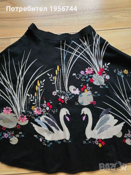 Дамска пола на лебеди размер S/M, стои изключително красиво и стилно, памучна, лека, неспарваща материя, идеална за сезона. На талията е с ластичен колан, отстрани се закопчава с цип. Обличана броени пъти!