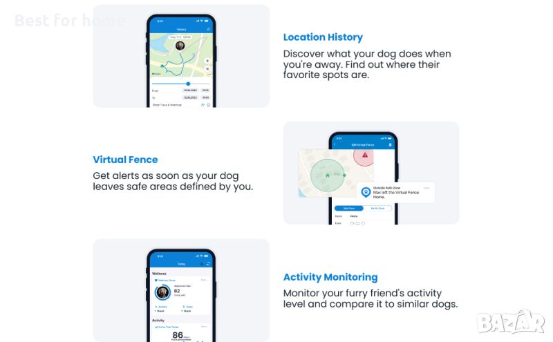 ПРОСЛЕДЯВАНЕ НА ДЕЙНОСТТА: Поддържайте кучето си във форма и здраво, като наблюдавате уелнес резултата на вашето куче; сравнете нивото на активност на вашия домашен любимец с това на всички други домашни любимци от същата порода