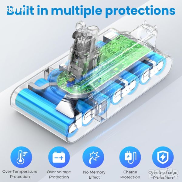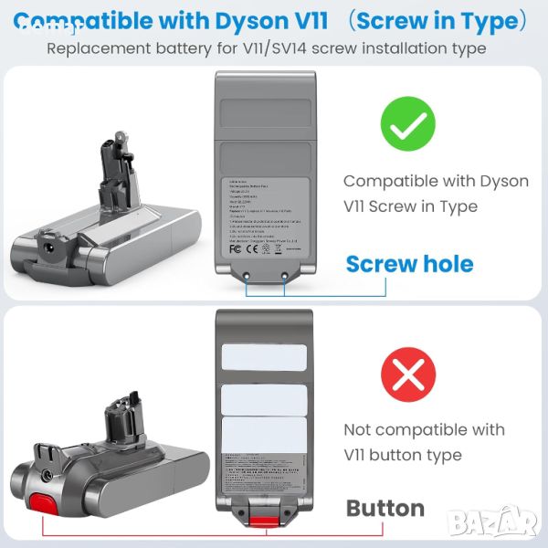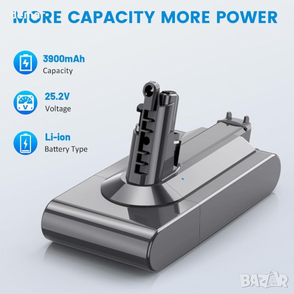 Тази 25,2 V 3900 mAh литиево-йонна батерия не предлага ефекти на паметта, което гарантира, че няма да повреди вашето устройство. Той идеално пасва на Dyson "Screw-in" Type V11 модели, включително V11 Complete, V11 Absolute и V11 Fluffy, но не и модели с бутон. С капацитет от 3900 mAh и напрежение от 25,2 V, тя съответства на оригиналната батерия по размер и функция. Разполага с интелигентна технология за множество защити, включително защита от удар, презареждане, свръхразреждане, свръхток, прегряване и защита от късо съединение. Оставете 5-10 минути охлаждане, преди зареждане, след тежка употреба за оптимална издръжливост.
