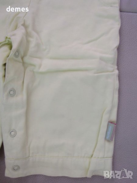 Гащеризонът е в мек нежен цвят зелена ябълка, с вътрешна щампа .