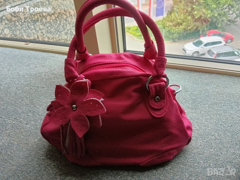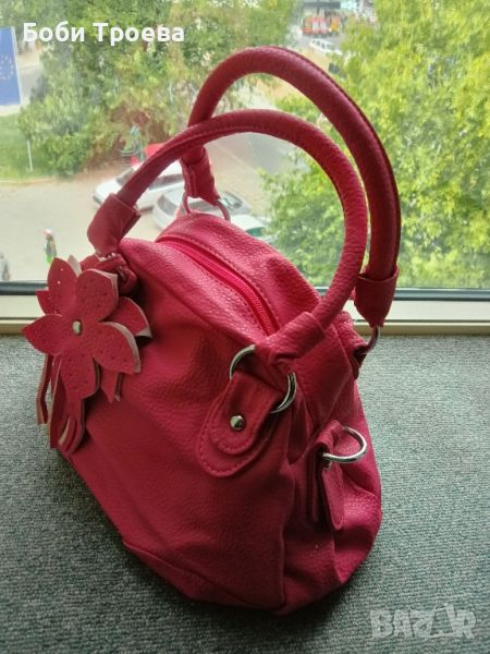 Дамска чанта в тъмнорозово, изработена от висококачествена еко кожа. → Обява 46649116