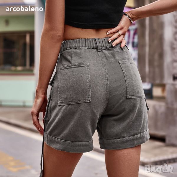 Дамски дънкови къси панталонки с джоб с ластик на талията, 5цвята