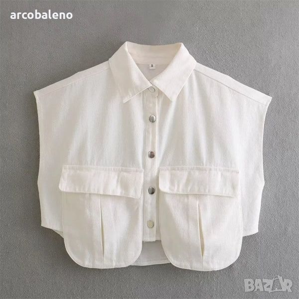 Дамска едноцветна дънкова риза без ръкави с големи джобове, 3цвята
