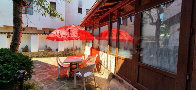 В парцела е построена до покрив сграда с проект за кафене с РЗП 50 кв.м. На двора, който е изцяло покрит с