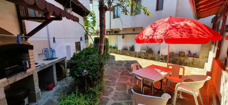 каменни плочи, е изградено барбекю с мивка. Къщата е захранена с вода от ВиК, като разполага и със собствен действащ водоизточник (кладенец). Отоплението е локално с термопомпа вода-вода.