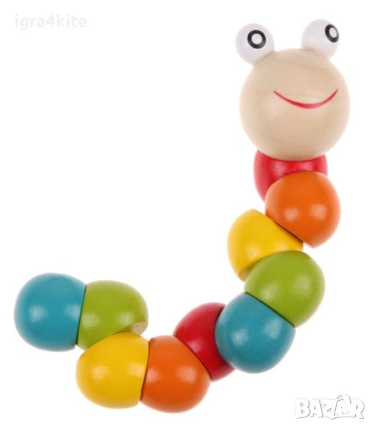 Дървеното червейче ( гъсеничка или змия ) се състои от 11 разноцветни елемента, които са свързани с ластик по средата, който прави играчката много подходяща за дърпане, въртене и усукване.