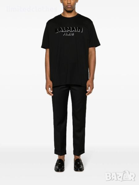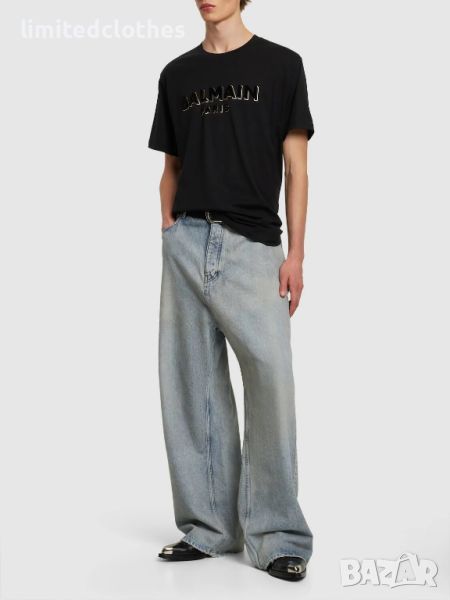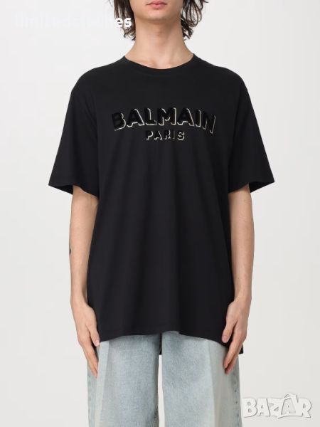 BALMAIN FLOCKED GOLD METALLIC LOGO PRINT OVERSIZED Мъжка Тениска