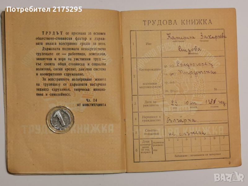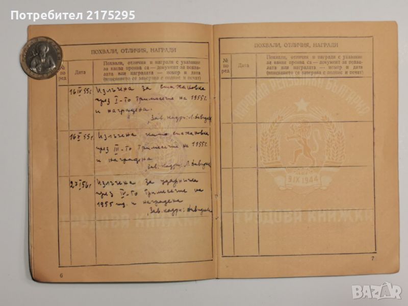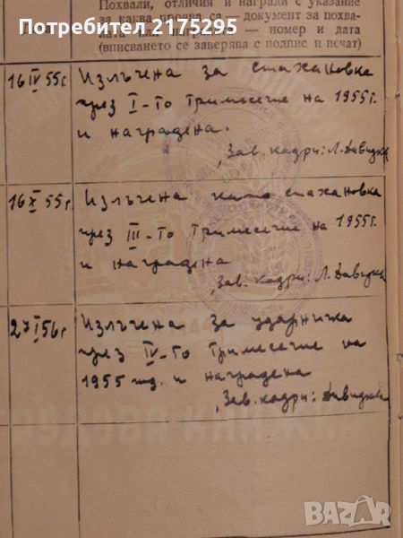 Соц.Трудова книжка от 1955г. → Обява 46653539