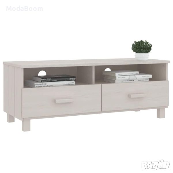 ТВ шкаф, бял, 106x40x40 см, бор масив