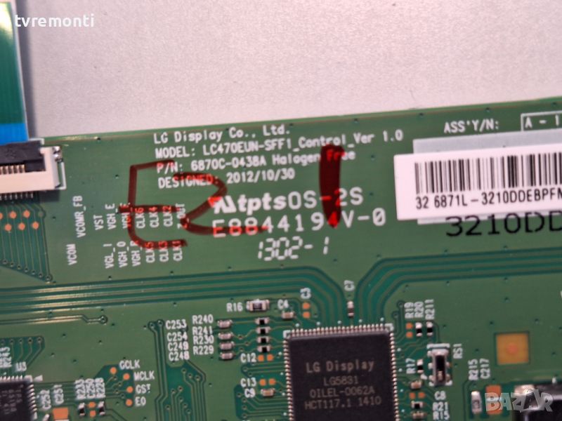 T-Con PCB6870C-0438A6871L-3210D for TOSHIBA 32L2434D for 32inc DISPLAY V33A00070800 Борда е гарантирано работещ Демонтиран от телевизор TOSHIBA модел 32L2434D със счупен дисплей V33A00070800 тествана от нашия техник