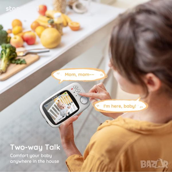 - [𝐓𝐰𝐨-𝐰𝐚𝐲 𝐓𝐚𝐥𝐤 & 𝟖 𝐋𝐮𝐥𝐥𝐚𝐛𝐢𝐞𝐬] С вграден микрофон, когато чуете любимия си да плаче, можете бързо да успокоите любимия си чрез камерата на бебефона. Ако не сте добри в успокояването на бебето си, тогава 8 приспивни песнички са най-добрият избор.
