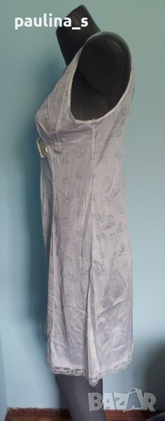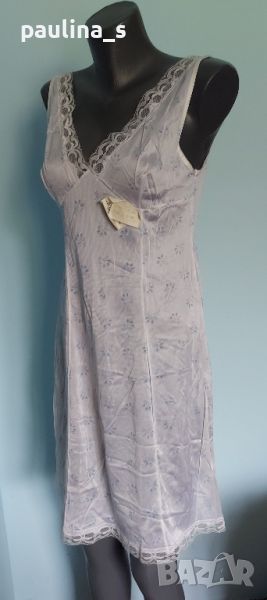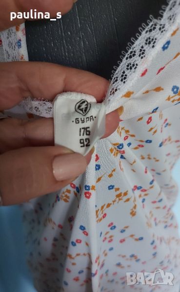 1️⃣. Бял сатениран комбинезон със син флорален принт. Цената е крайна 19,99лв / 10 евро. Има еластичност и покрива няколко размера - М до XL