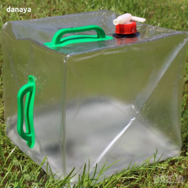 Удобен за носене, снабден с две дръжки. Кранче за регулиране на водната струя. Задължителен елемент във вашето пикник снаражение! Празен, мехът не заема място. За многократна употреба.